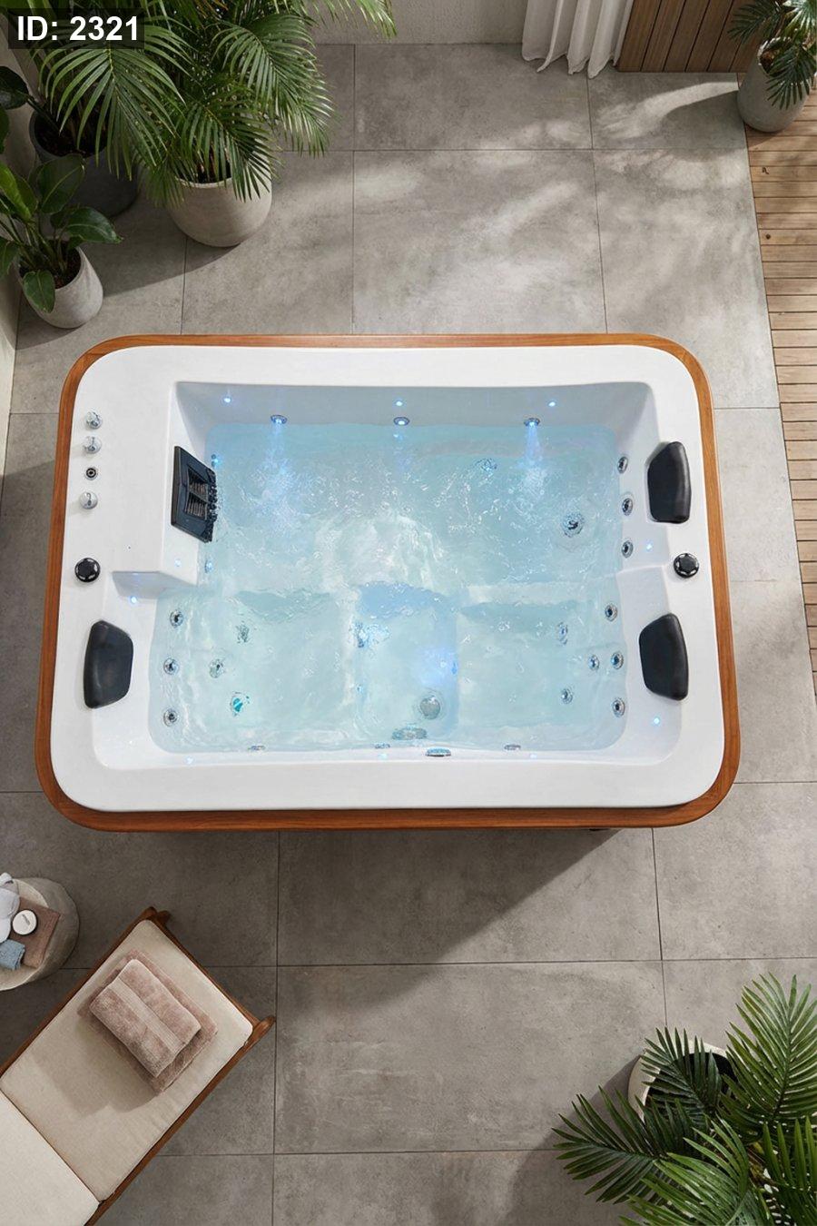 جاكوزي خارجي 4 مقاعد بإطار خشبي وإضاءة LED