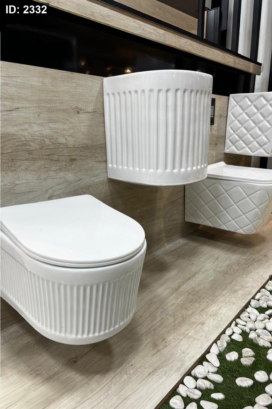 نقشة مخدّدة طولية على جسم المرحاض وصندوق التعليق تعطي شكل ديكوري راقي وبسيط