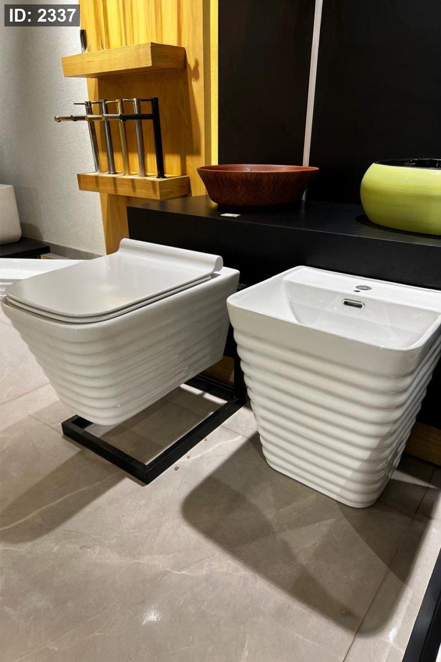 مغسلة قائمة بنفس تصميم المرحاض لانسجام كامل في ديكور الحمّام.
