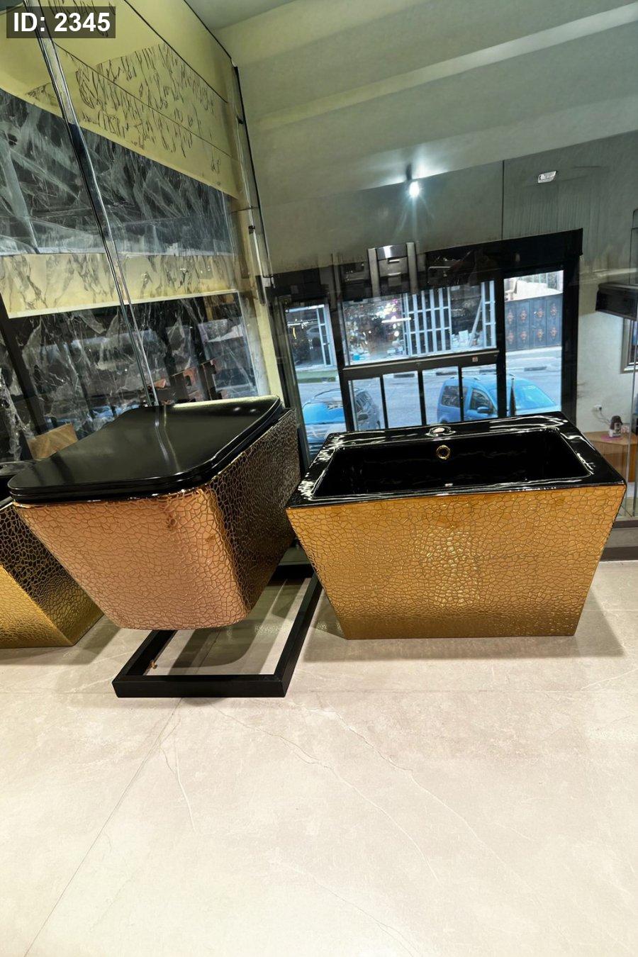 غطاء مرحاض أسود لامع وحوض مغسلة داخلي أسود لتباين أنيق مع لون الجسم.