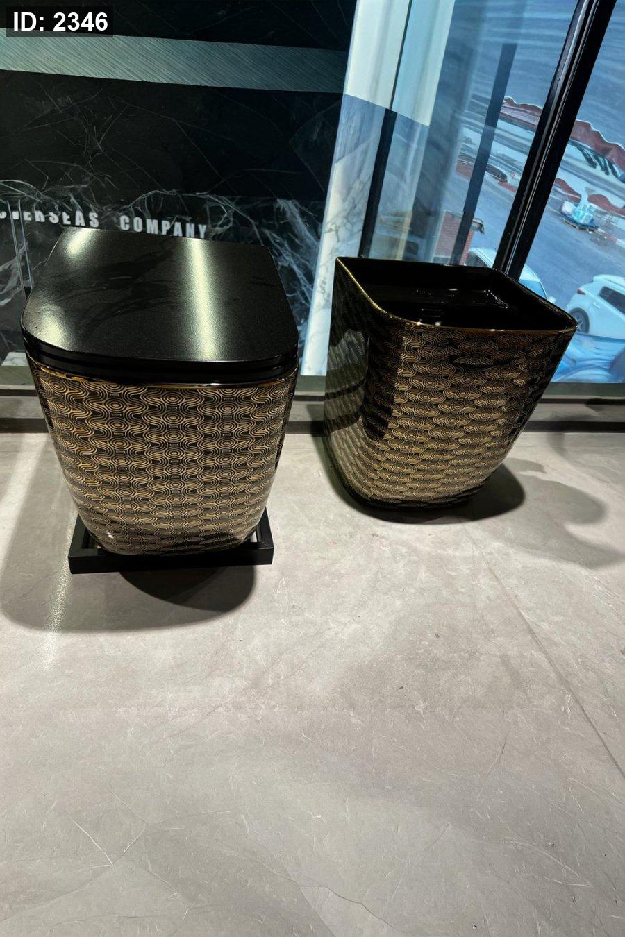 مغسلة قائمة بنفس النقشة الذهبية لمظهر طقم متناسق وأنيق.