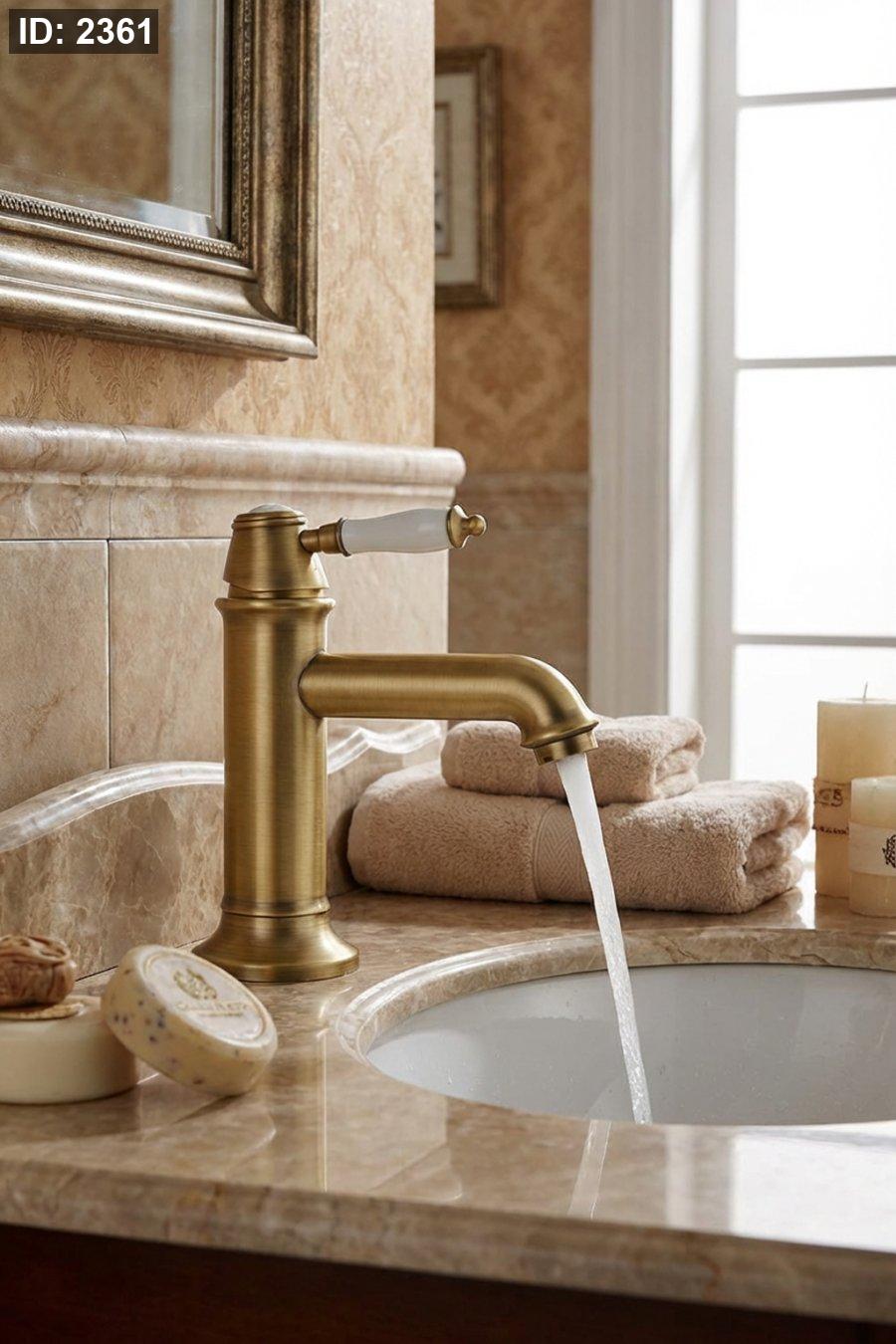 لون ذهبي أنتيك يعطي إحساس فندقي فاخر للمغسلة.