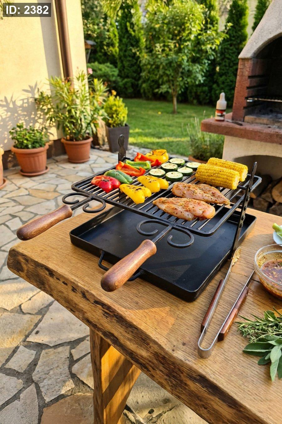 ✅ طبقتين: شبكة علوية للشواء + صينية سفلية لتجميع الدهون والعصارة