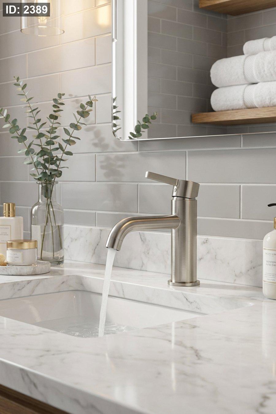 ✅ تشطيب Brushed Nickel أنيق ومناسب للرخام والحمامات الفاتحة