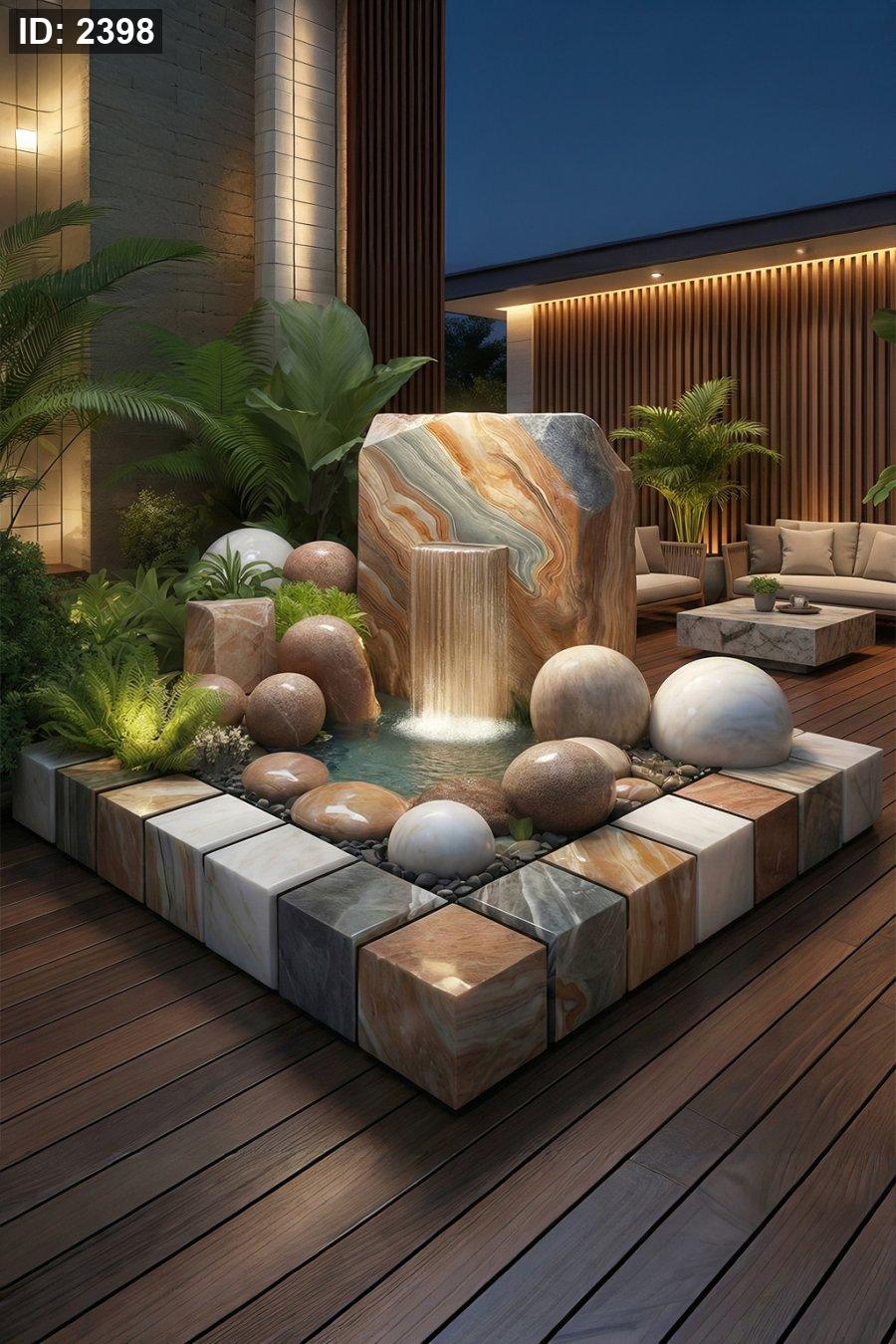 ✅ تنسيق حجارة كروية ديكورية حول البركة لستايل “Zen” رايق