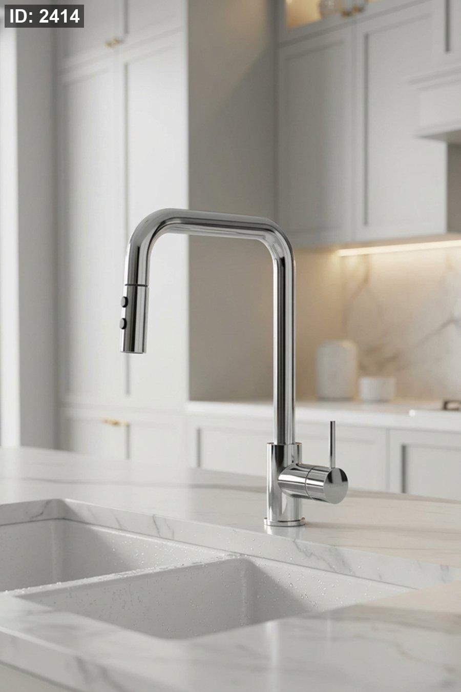 تصميم مودرن برقبة عالية—مريحة للغسيل وتنضيف الصحون وتشطيب كروم لامع.