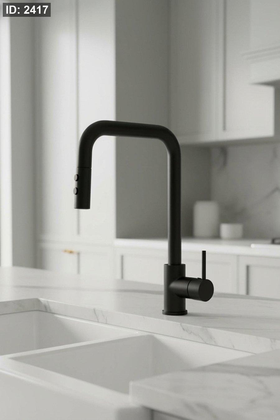 تصميم بسيط وفخم—أسود مطفي ورقبة عالية لراحة أكبر بالمجلى.