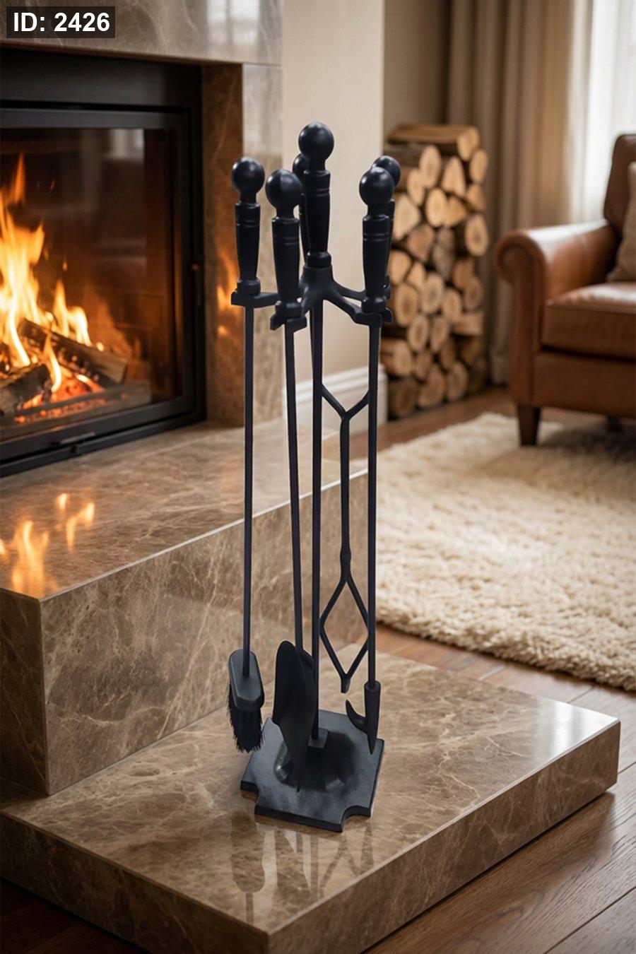 ✅ ستاند ثابت مع 4 أدوات أساسية لصوبات الحطب