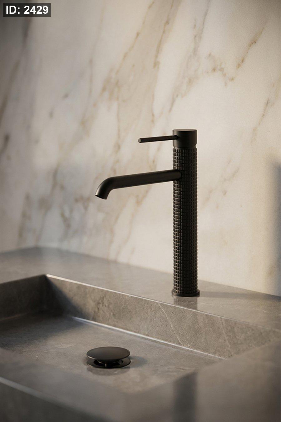 حنفية مغسلة مربّعة طويلة – أسود مطفي