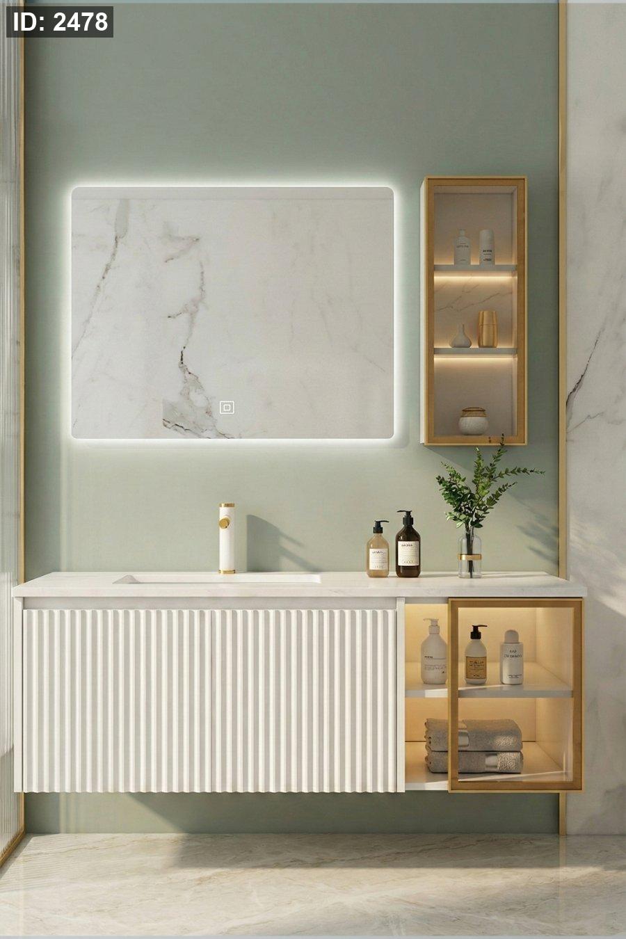 ✅ خزانة علوية/رف جانبي للتخزين مع إضاءة ناعمة