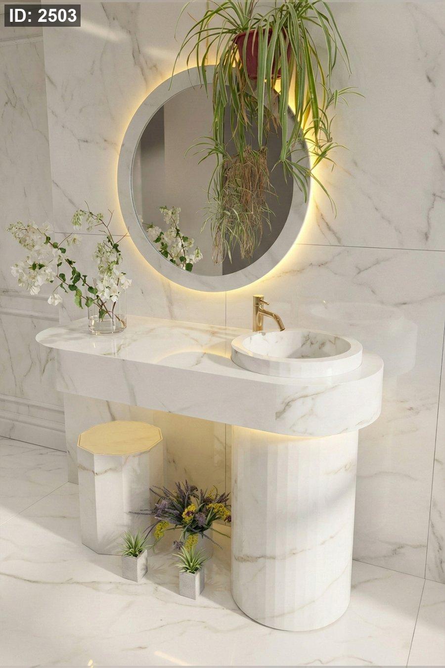 ✅ حوض دائري مدمج فوق السطح (ستايل تركي/مودرن)