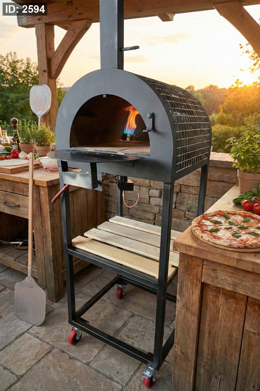 فرن بيتزا قوي وعملي بتصميم قبة مع مدخنة عشان يعطيك حرارة ثابتة وسحب ممتاز، مناسب للحديقة والسطح. مبني من الداخل حديد قوي وطوب حراري كامل لنتيجة خبز/بيتزا مستوية، وعلى ستاند بعجلات لسهولة النقل والاستخدام.