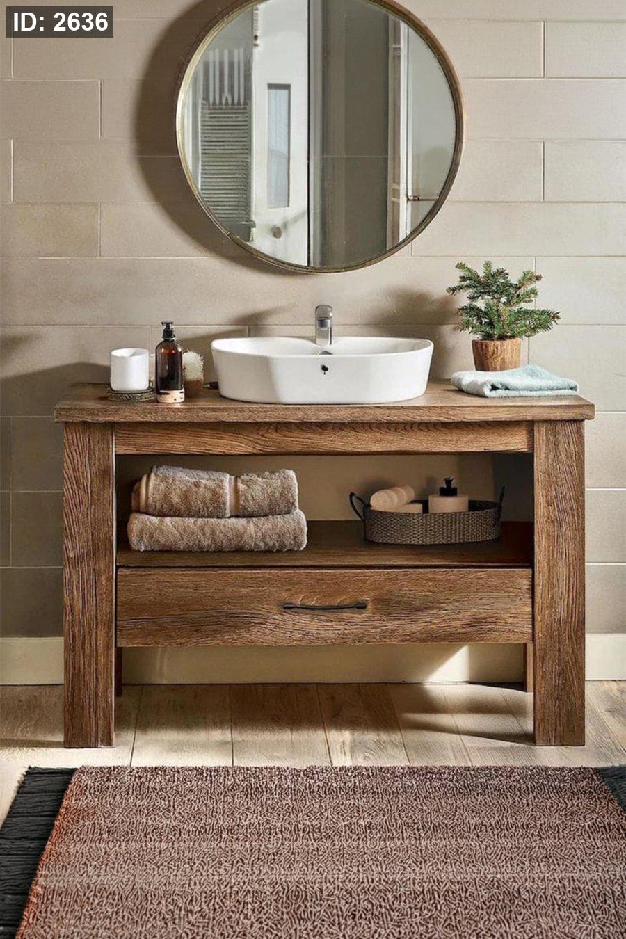 متوفر خدمة التوصيل لجميع المناطق — مغسلة خشب أنيقة بتصميم عملي مع درج تخزين ورف سفلي وترتيب سهل.