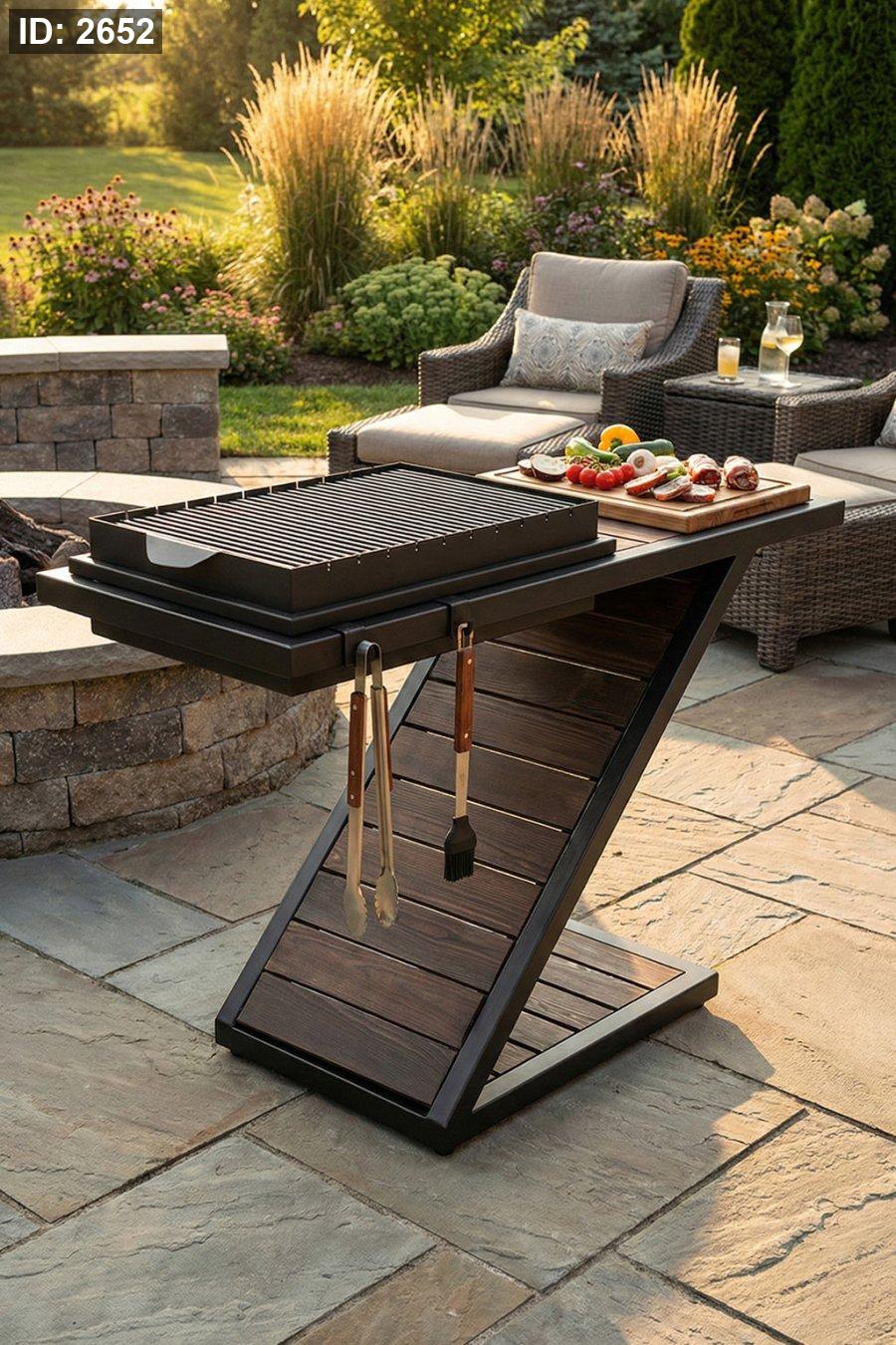 ✅ تصميم عملي: منطقة شوي + طاولة جانبية للتجهيز والتقديم