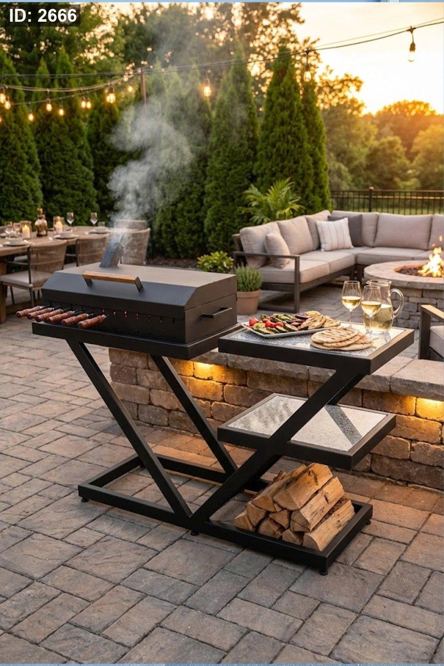 ✅ تصميم عملي: مساحة شوي + طاولة تقديم وتجهيز