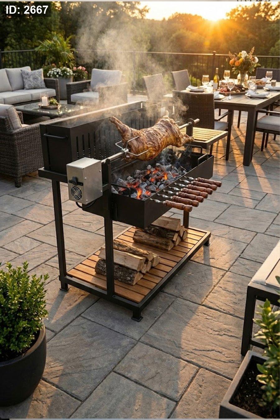 ✅ نظام روتيسيري: سيخ شوي + موتور (مناسب للخروف/الدجاج)
