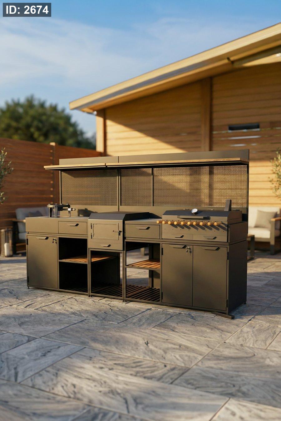 ✅ تصميم مطبخ كامل: شواية + مساحات تحضير + خزائن وأدراج + رفوف تخزين سفلية