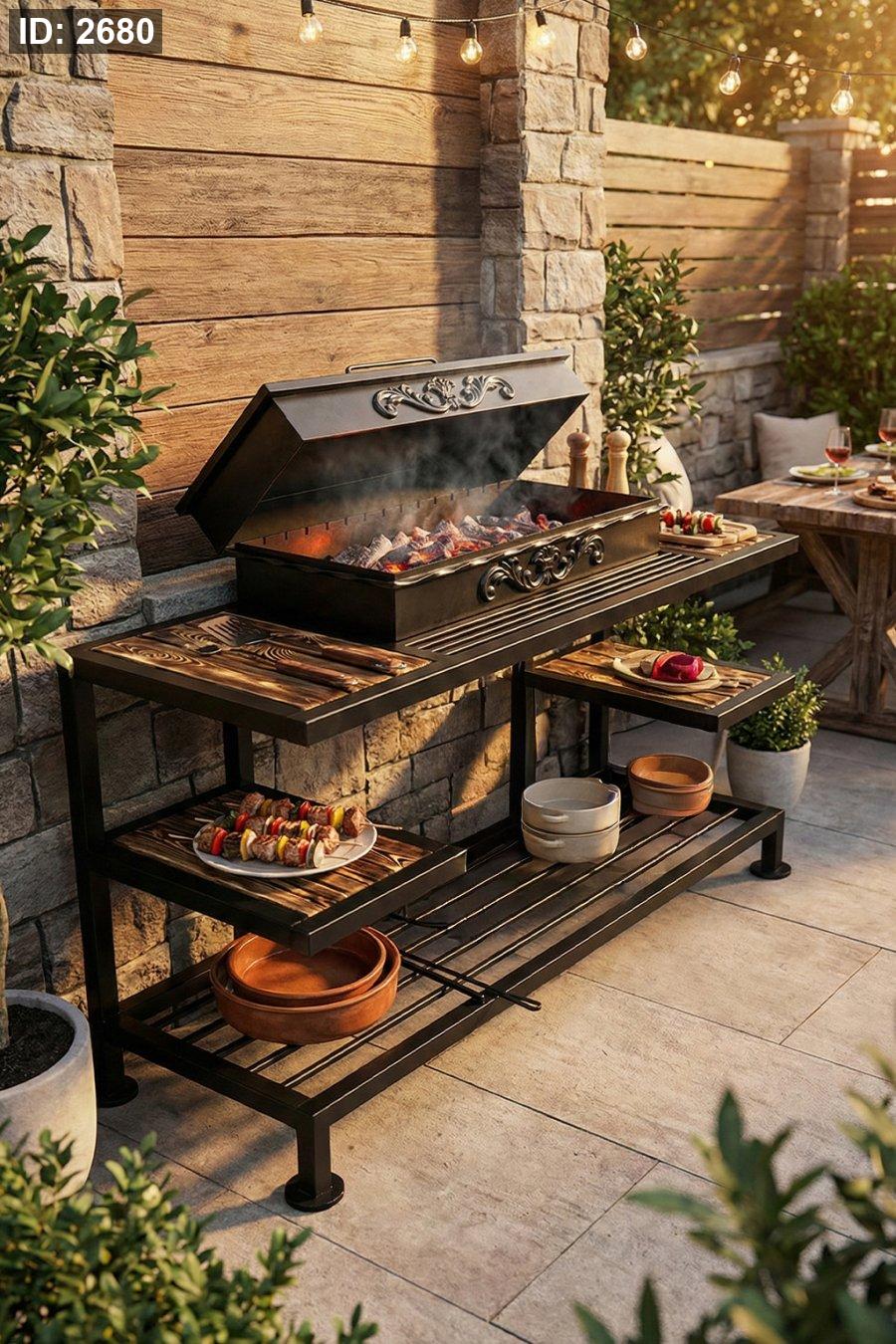 ✅ رفوف متعددة للتخزين والترتيب (فحم/حطب/أدوات/صحون)