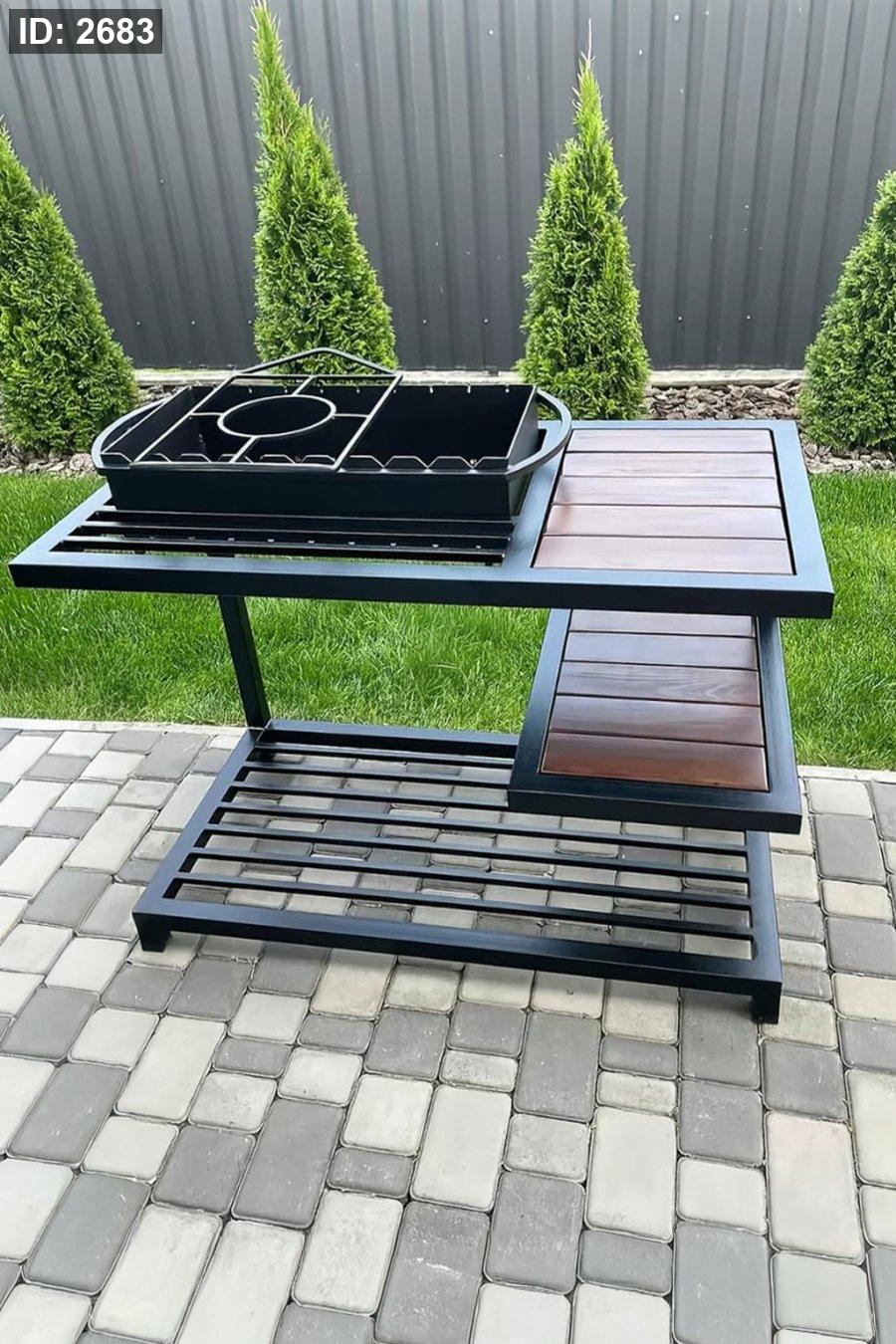 ✅ تصميم طاولة عملي: منطقة الشوي + سطح جانبي للتقديم/التحضير