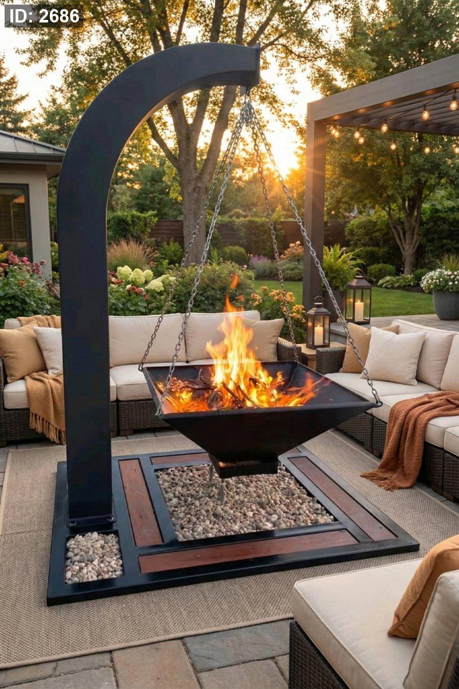 ✅ تصميم معلّق بسلاسل قوية مع قاعدة ثابتة (ستايل فاير-بيت عصري)