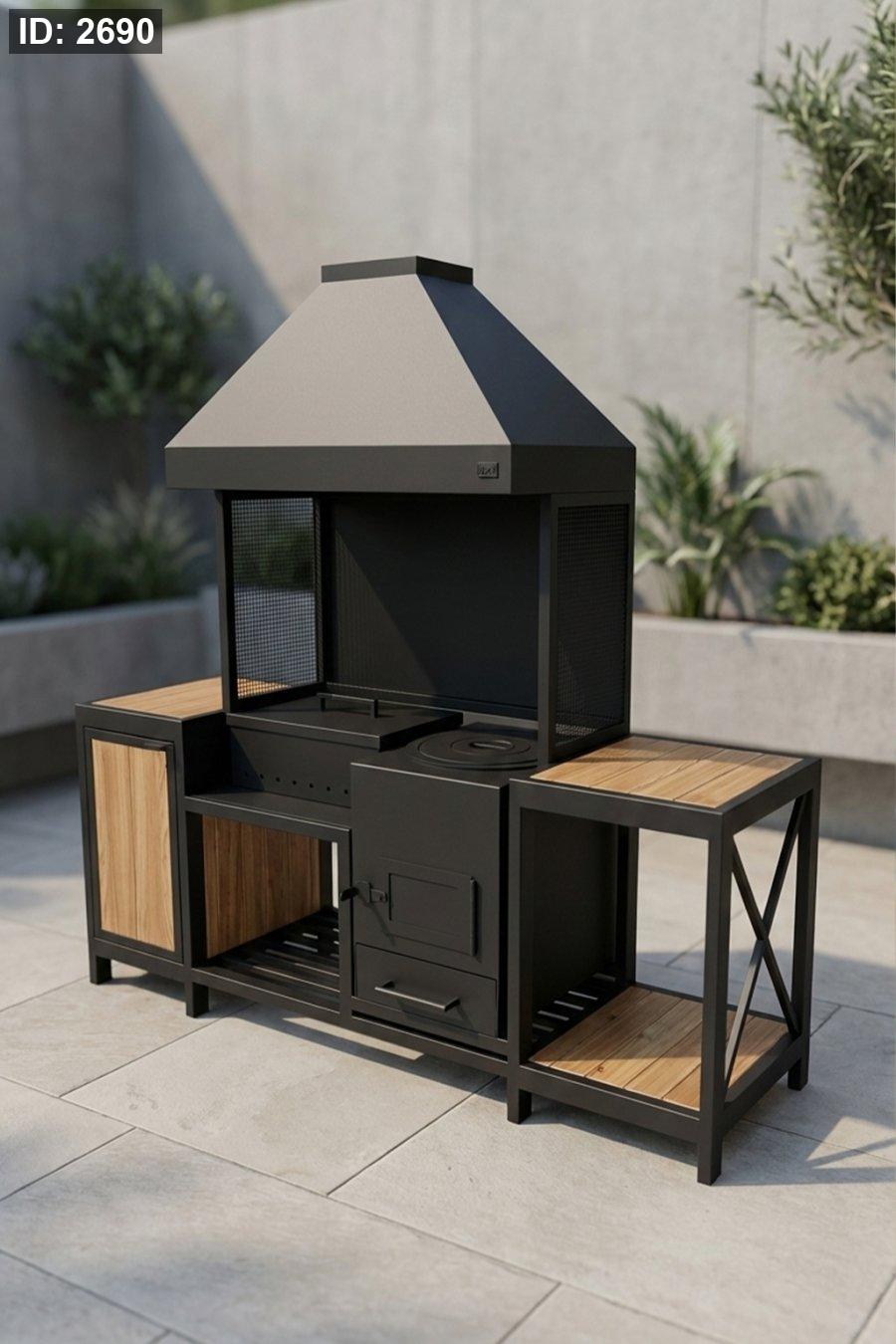 شواية فحم ستايل Z مع رف خشب طبيعي
