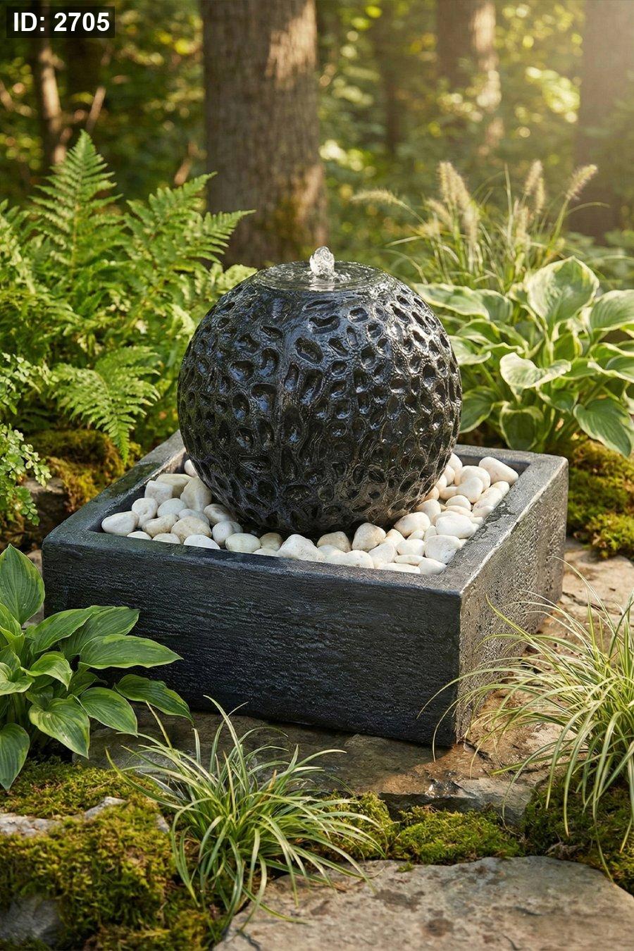 ✅ التصميم: كرة منقوشة فوق قاعدة مربعة + حصى ديكوري (ستايل مودرن)