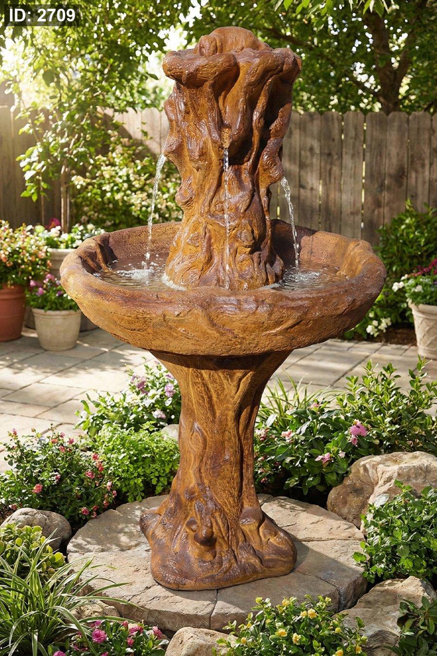 ✅ التصميم: شكل جذع شجرة الزيتون مع حوض دائري وتدفّق ميّ جانبي (ستايل طبيعي/تراثي)