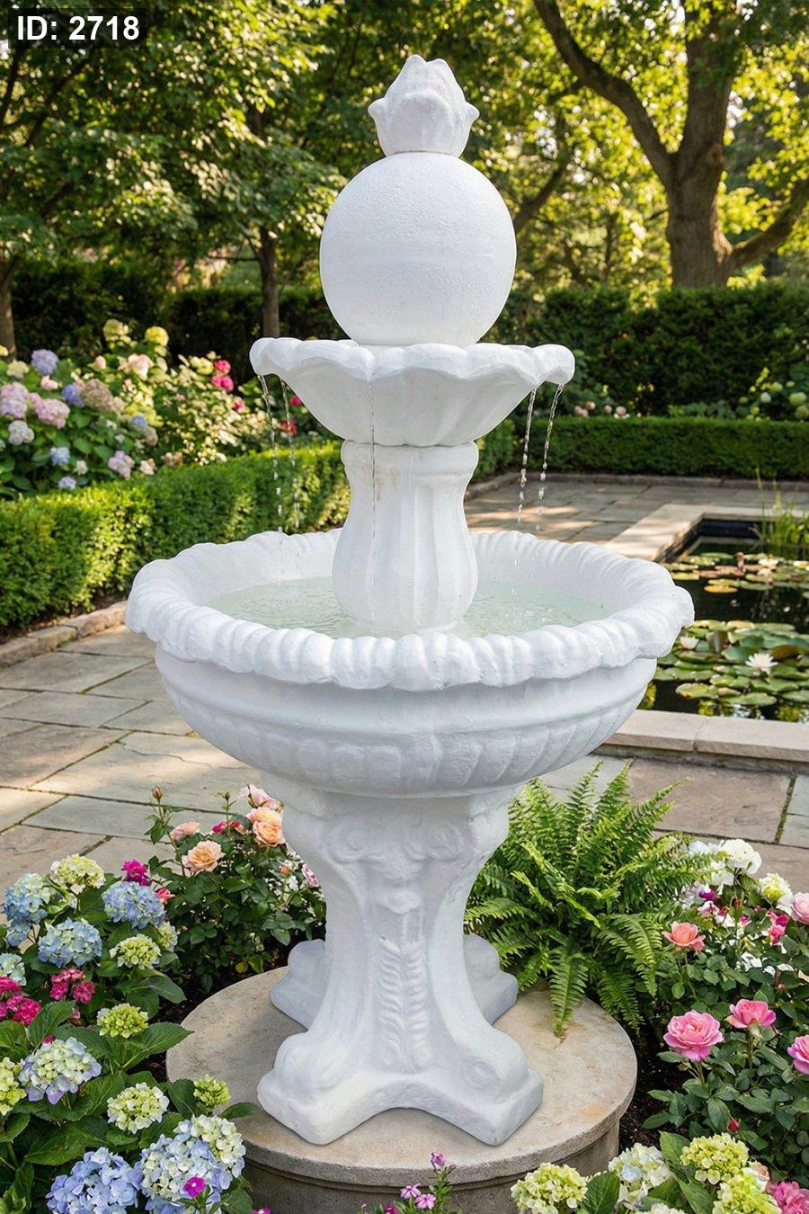 ✅ التصميم: طبقتين كلاسيك + كرة علوية مع تدفّق محيطي لحوض واسع
