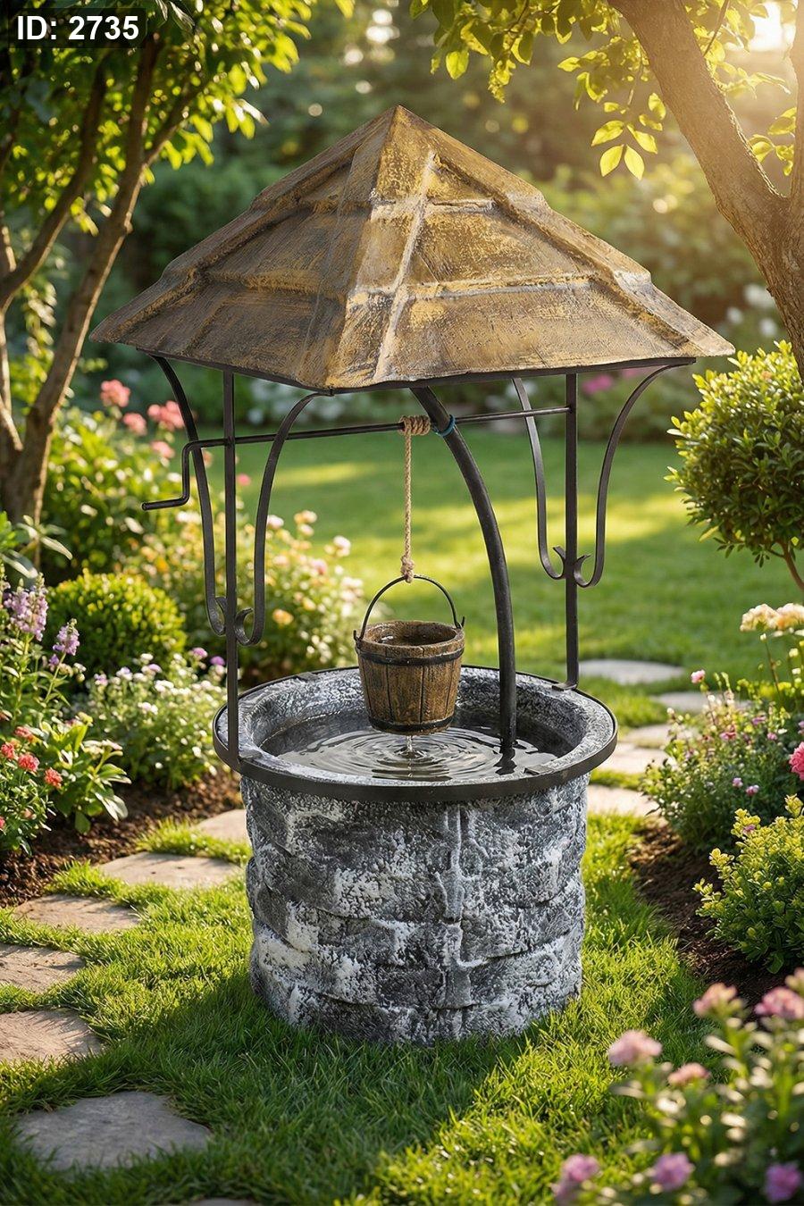 نافورة بشكل “بير قديم” بلمسة ريفية تراثية، صوت ميّ هادي ومنظر بيكمل أي حديقة أو مدخل بيت.