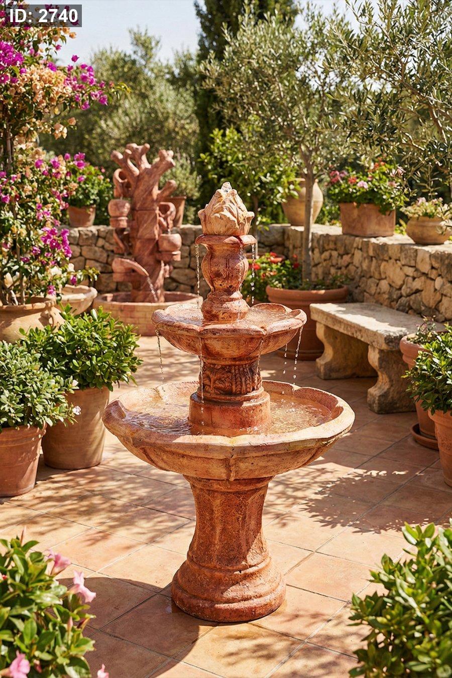 نافورة حدائق كلاسيكية بطبقتين مع تدفّق مي ناعم، شكلها فخم وهادئ وبتناسب المداخل والحدائق والفلل.
