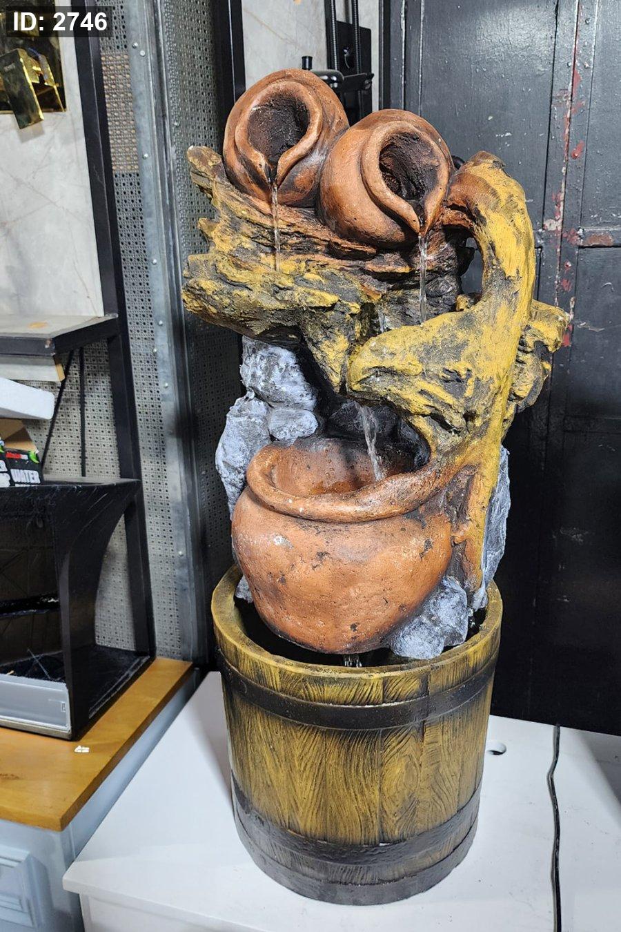 نافورة داخلية/خارجية بتصميم ريفي (جرّتين فوق + جرة استقبال)، بتعطي صوت ميّ مريح ولمسة ديكور دافئة للمداخل والزوايا.