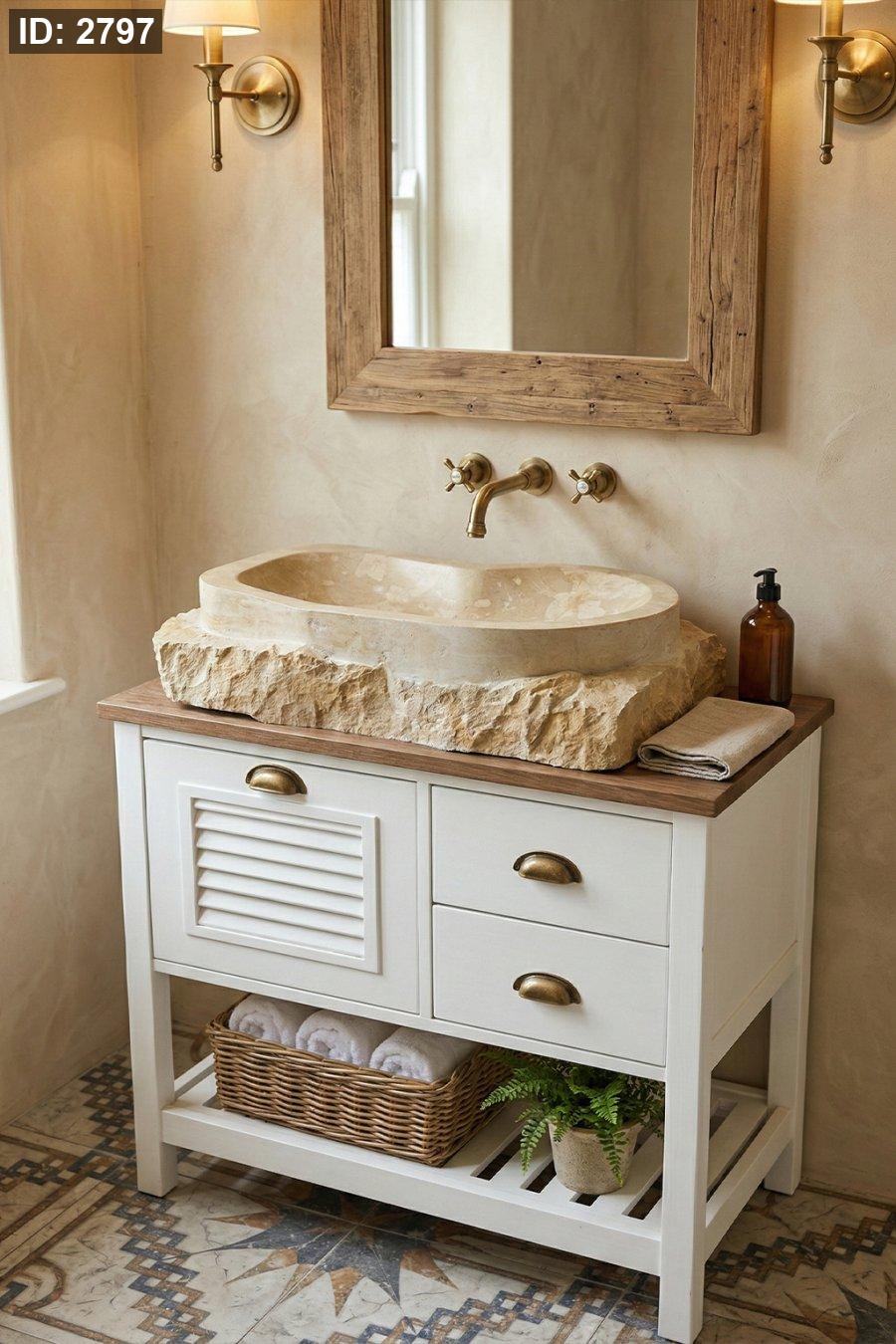 التصميم: حوض سطح (Countertop) كتلة حجر خام