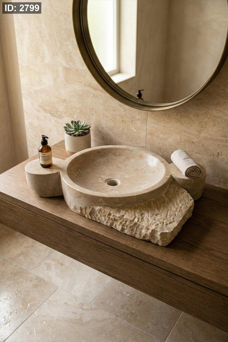 التصميم: حوض سطح (Countertop) دائري مع قواعد جانبية مدمجة