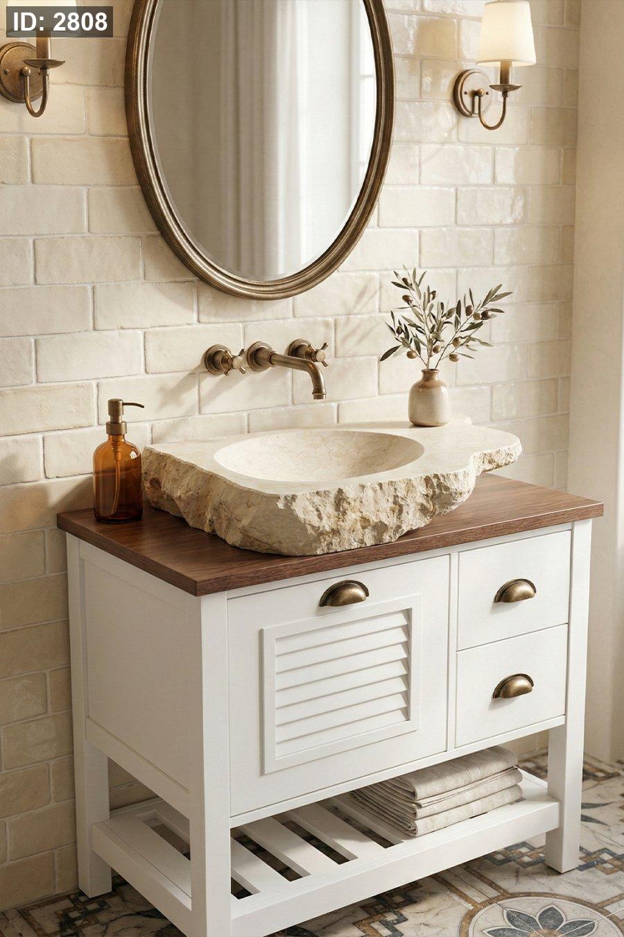 التصميم: حوض سطح (Countertop) مستطيل/حر بحواف طبيعية