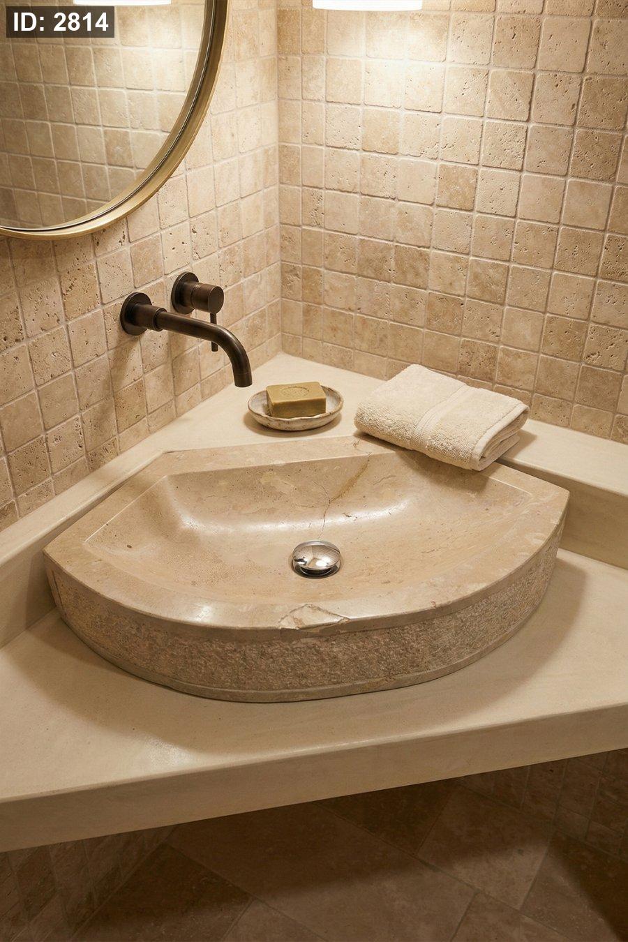 التصميم: حوض سطح (Countertop) نصف دائري (Corner/Wall-friendly)