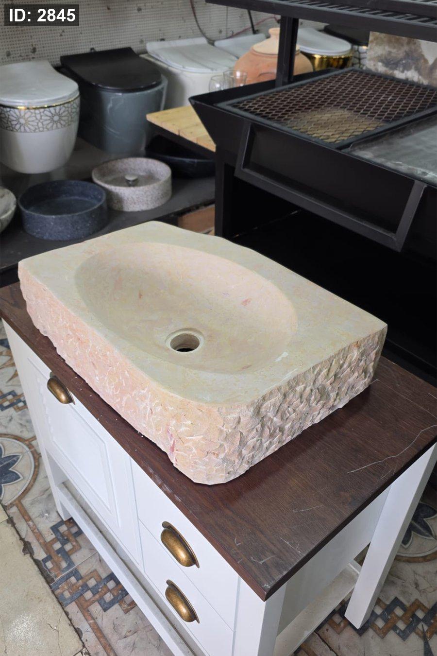 ✅ التصميم: حوض داخلي بيضاوي أملس + جوانب خارجية خام محفورة (ستايل عصري)