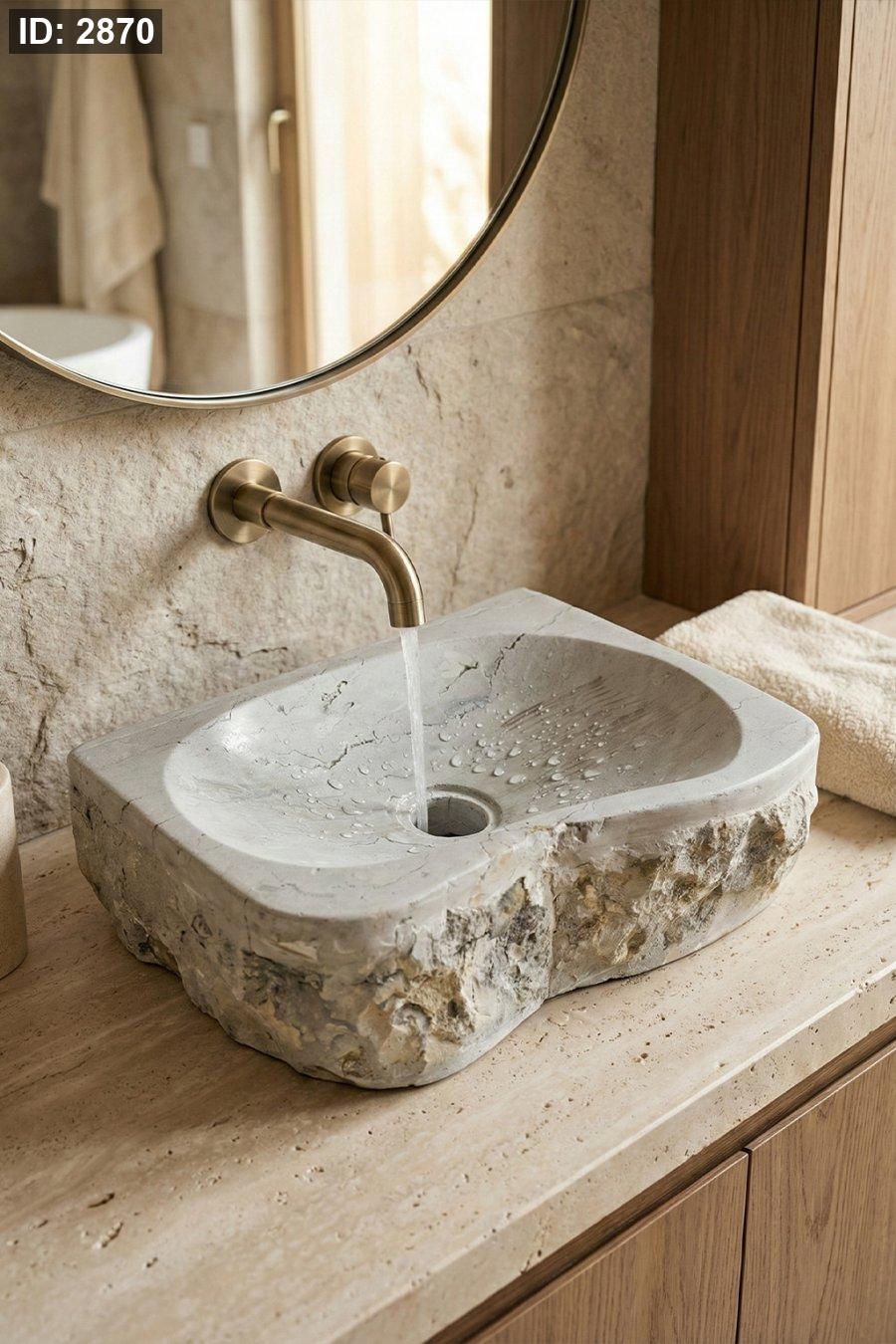 ✅ التصميم: مستطيل بحوض داخلي أملس + حواف خارجية خام صخرية