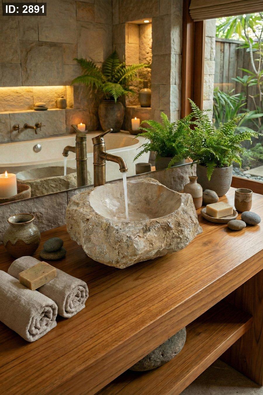 حوض حجري بتصميم طبيعي خام ولمسة مميزة تعكس جمال الحجر الحقيقي، بضيف فخامة ودفء للحمام، ومناسب للديكورات الراقية والريفية والمساحات اللي فيها طابع طبيعي أصيل.