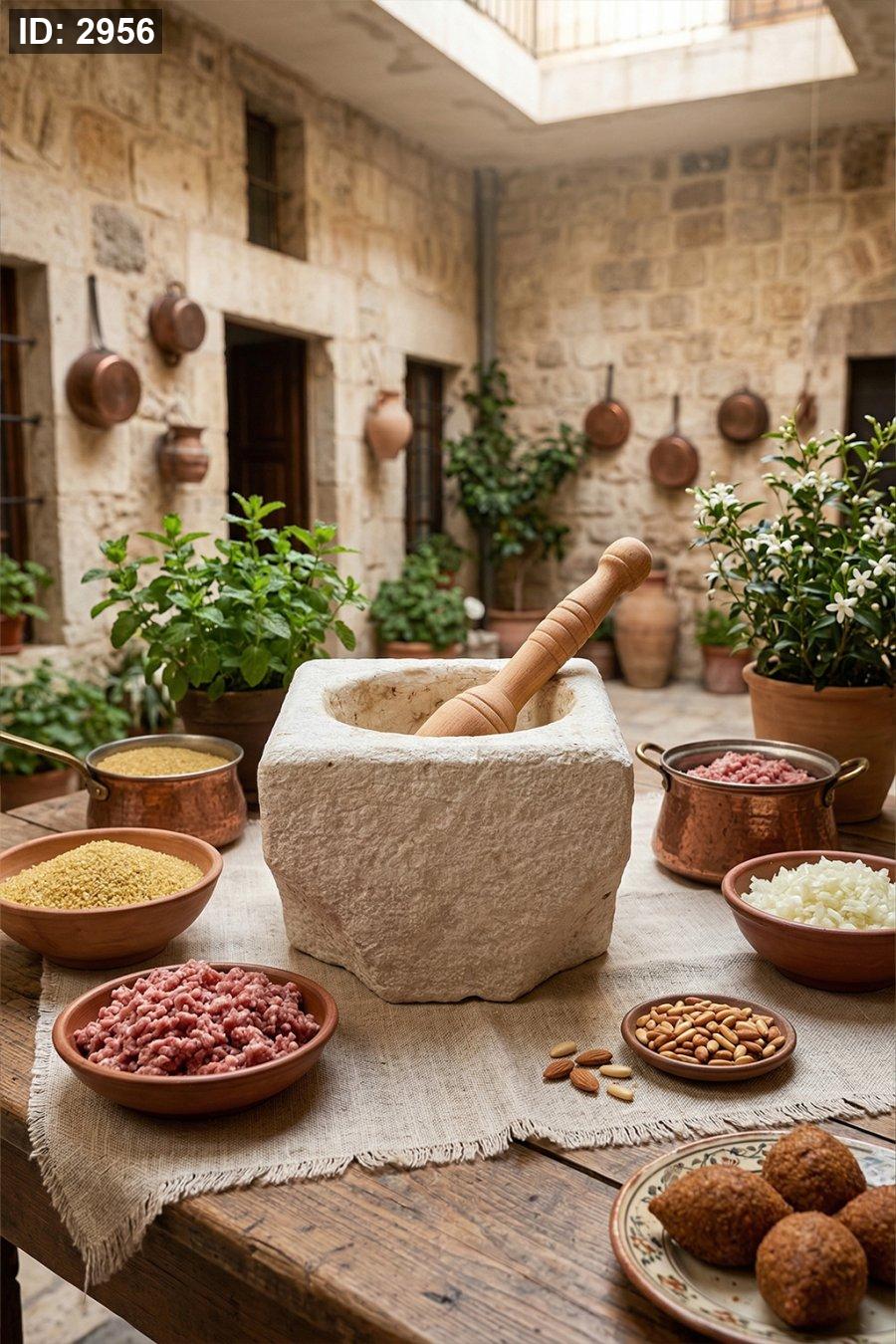 جرن كبة / مدقة لحم من الحجر الطبيعي