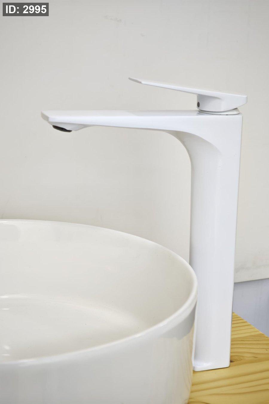 حنفية مغسلة بتصميم طويل ومودرن باللون الأبيض، مناسبة للمغاسل العصرية وبتعطي الحمام لمسة نظيفة وأنيقة. خدمة التوصيل متوفرة لجميع المناطق.