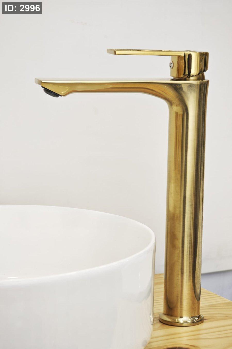 حنفية مغسلة ذهبية طويلة بتصميم دائري