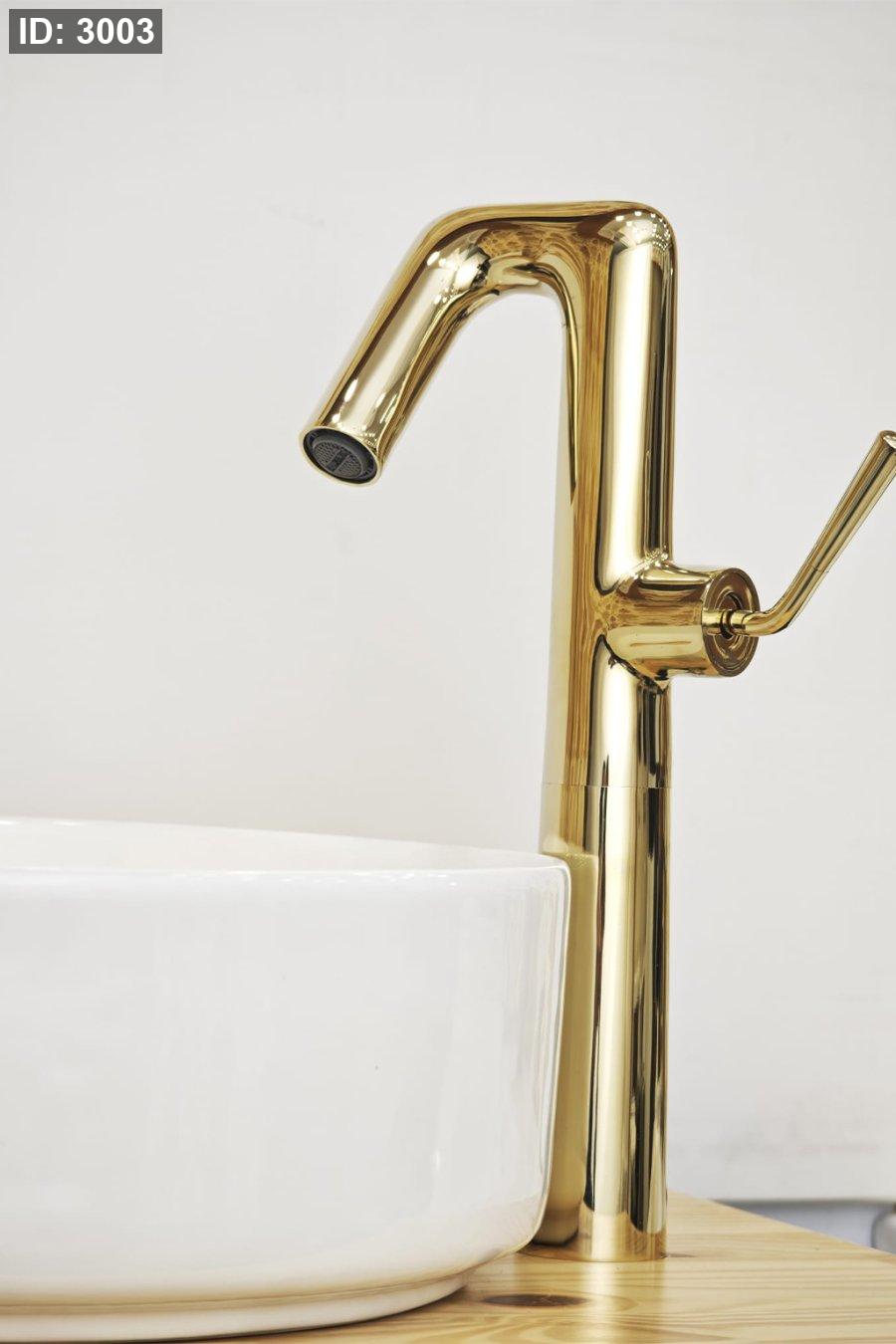 حنفية مغسلة ذهبية طويلة بتصميم عصري