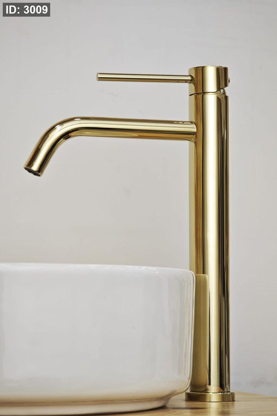 حنفية مغسلة ذهبية طويلة بتصميم دائري