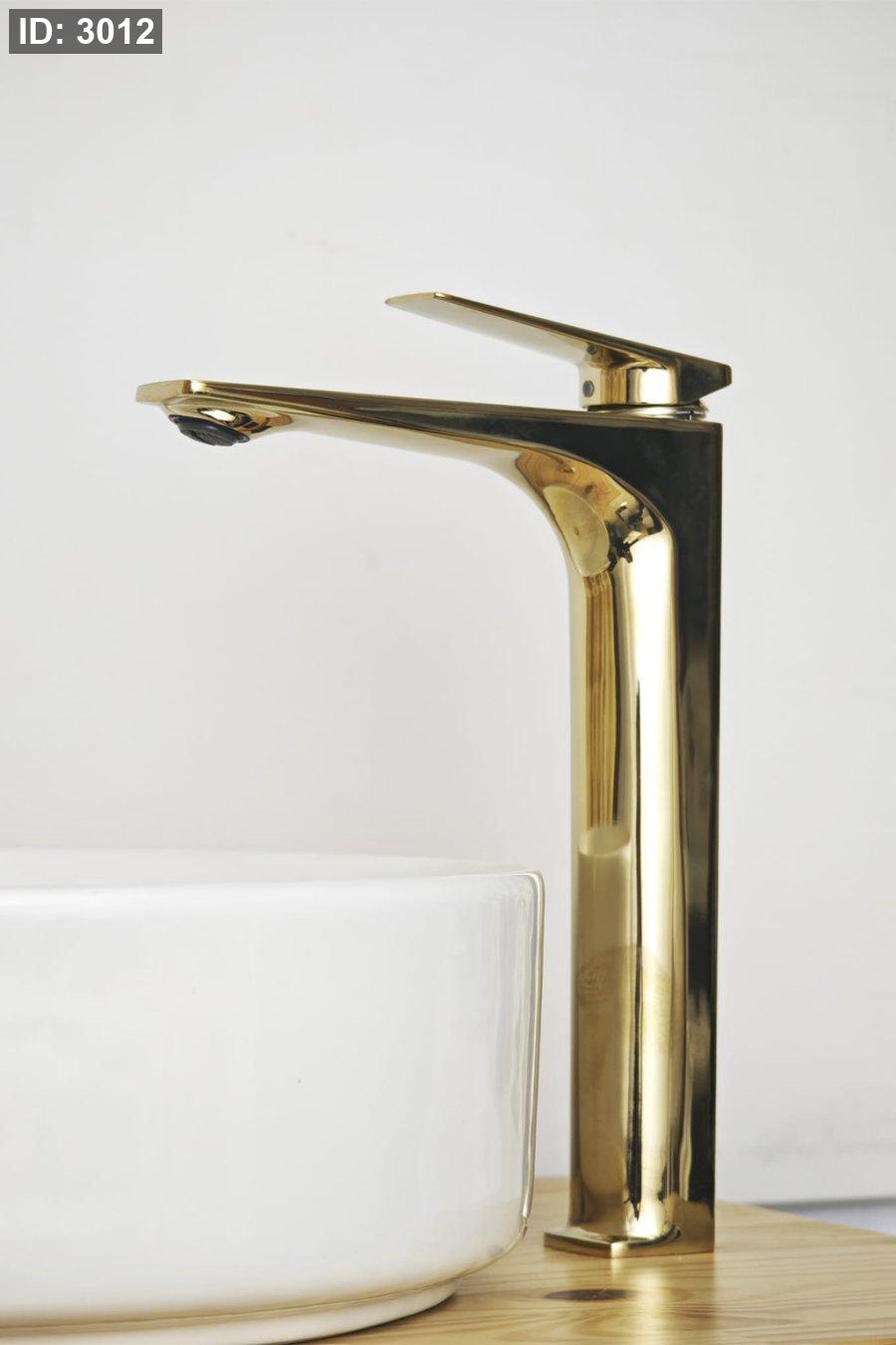 حنفية مغسلة ذهبية طويلة بتصميم مربع