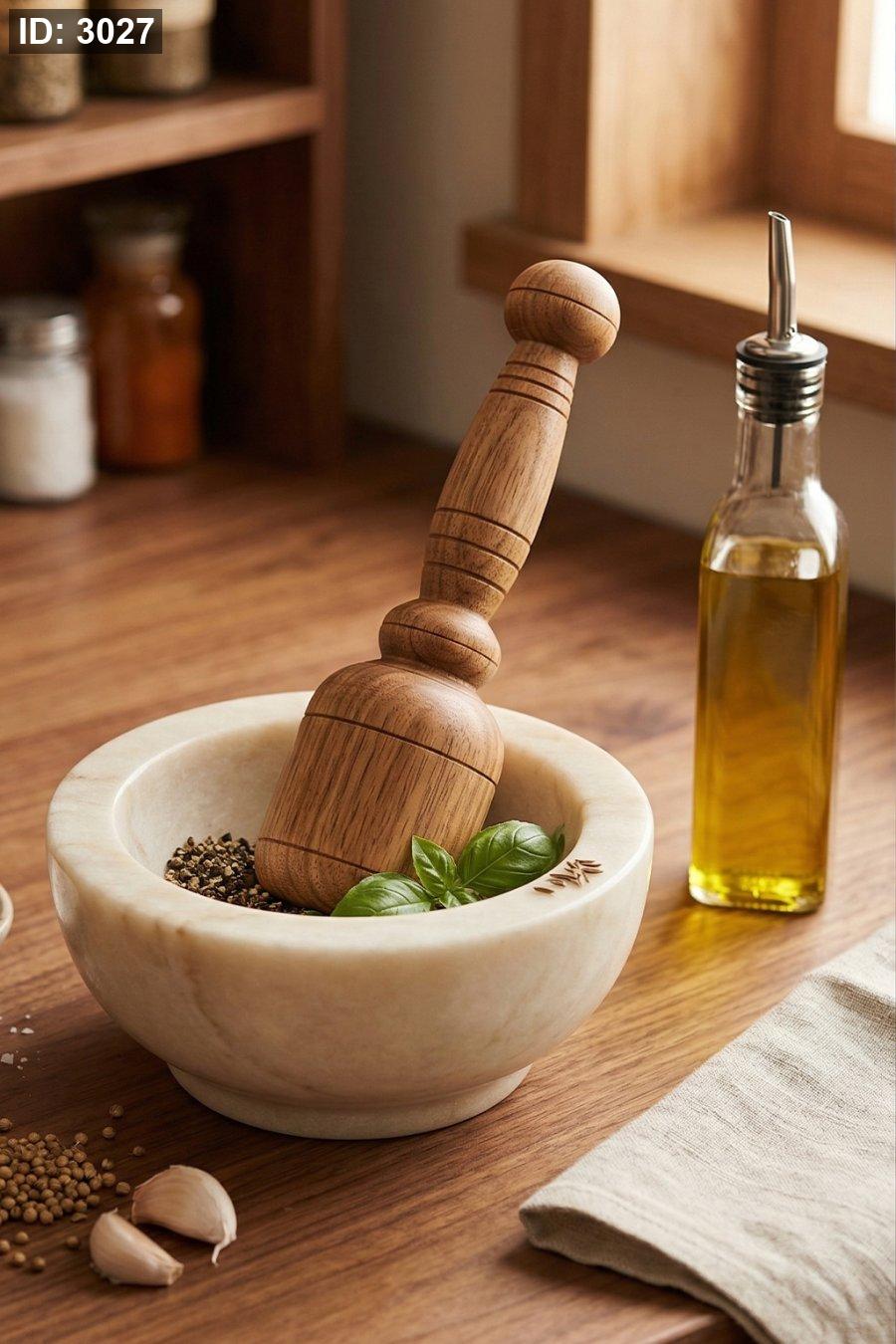 مدقة أنيقة وعملية مصنوعة من الخشب الطبيعي، مناسبة لدقّ الثوم والبهارات والأعشاب بسهولة، وتمنح مطبخك لمسة دافئة وتراثية.