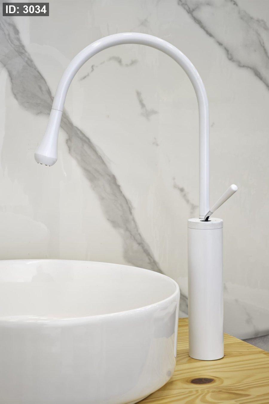 حنفية مغسلة بيضاء طويلة بتصميم منحني
