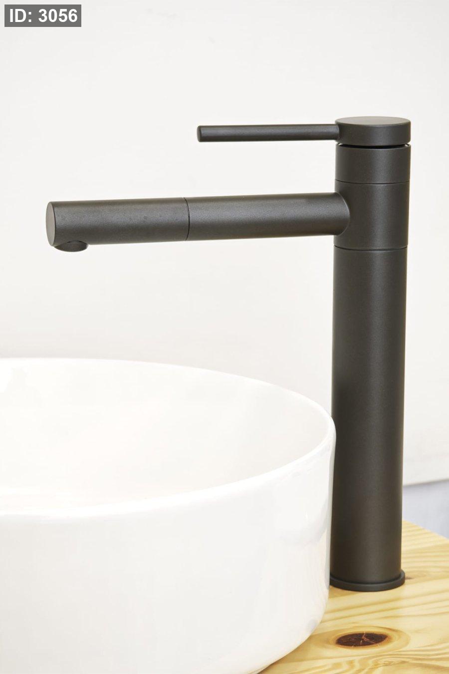 حنفية مغسلة جرافيت طويلة بتصميم دائري