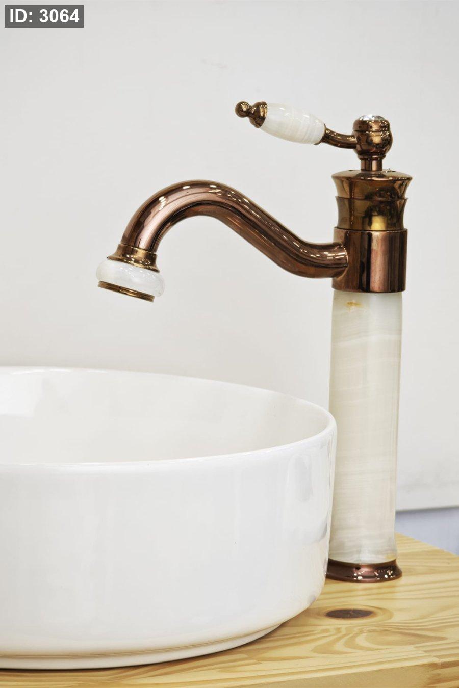 حنفية مغسلة روز غولد مع قاعدة رخامي بتصميم كلاسيكي