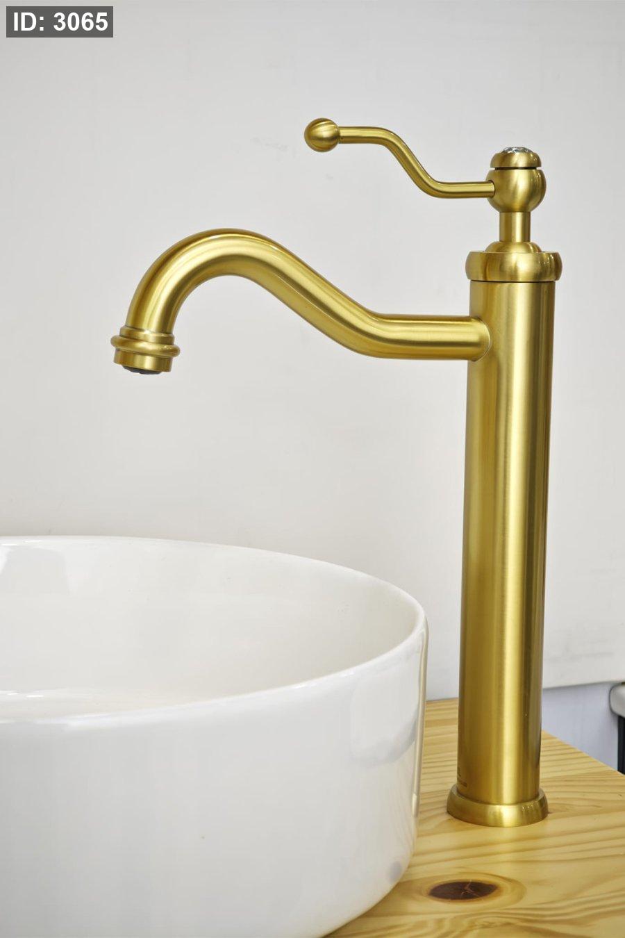 حنفية مغسلة طويلة ذهبي معتّق بتصميم كلاسيكي أنيق