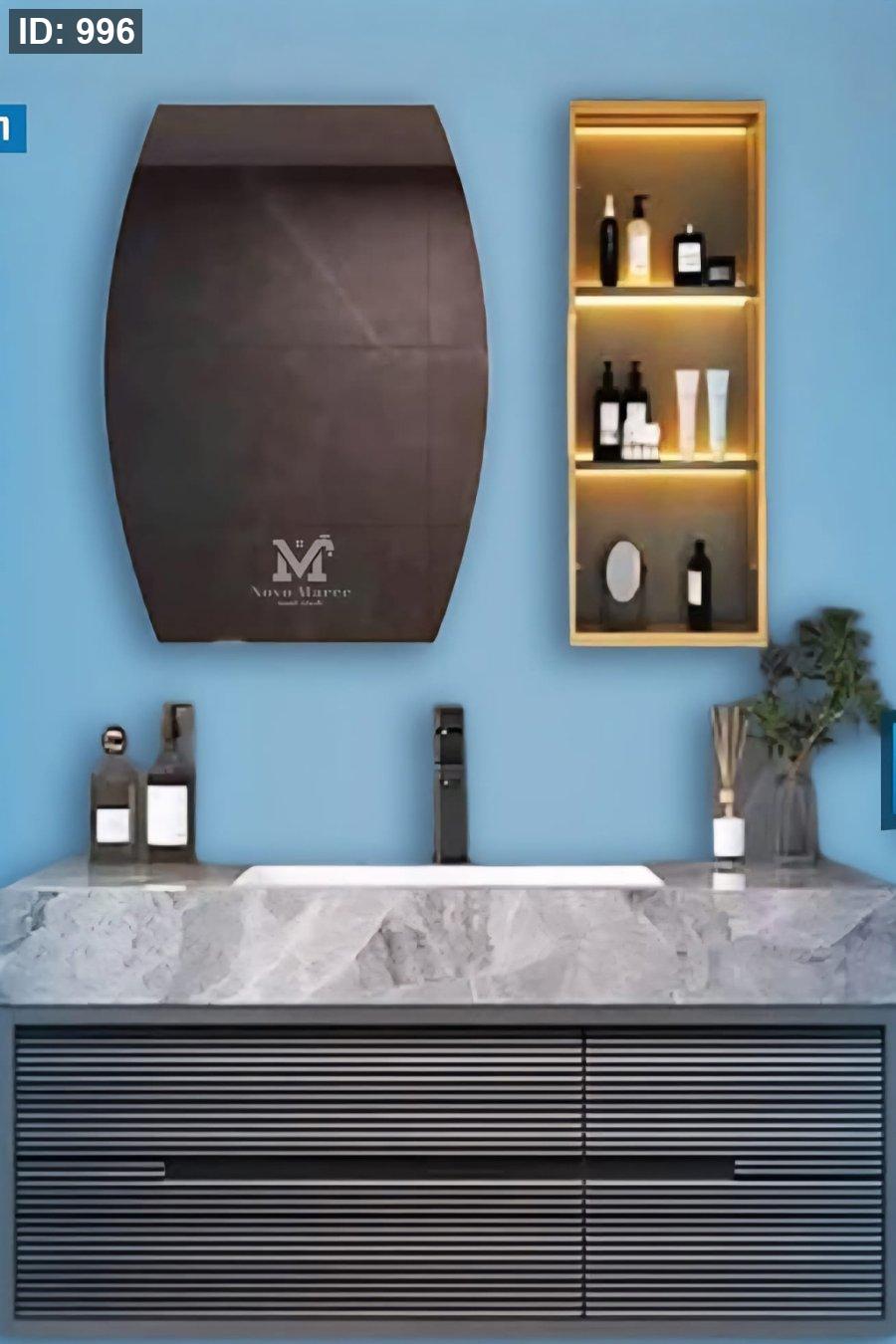طقم مغسلة رخامية مودرن مع خزانة جداريّة مضاءة